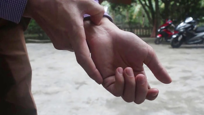 Bấm huyệt Nội quan để tránh say xe (Ảnh: www.youtube.com/watch?v=PWCqI8xjAYk)