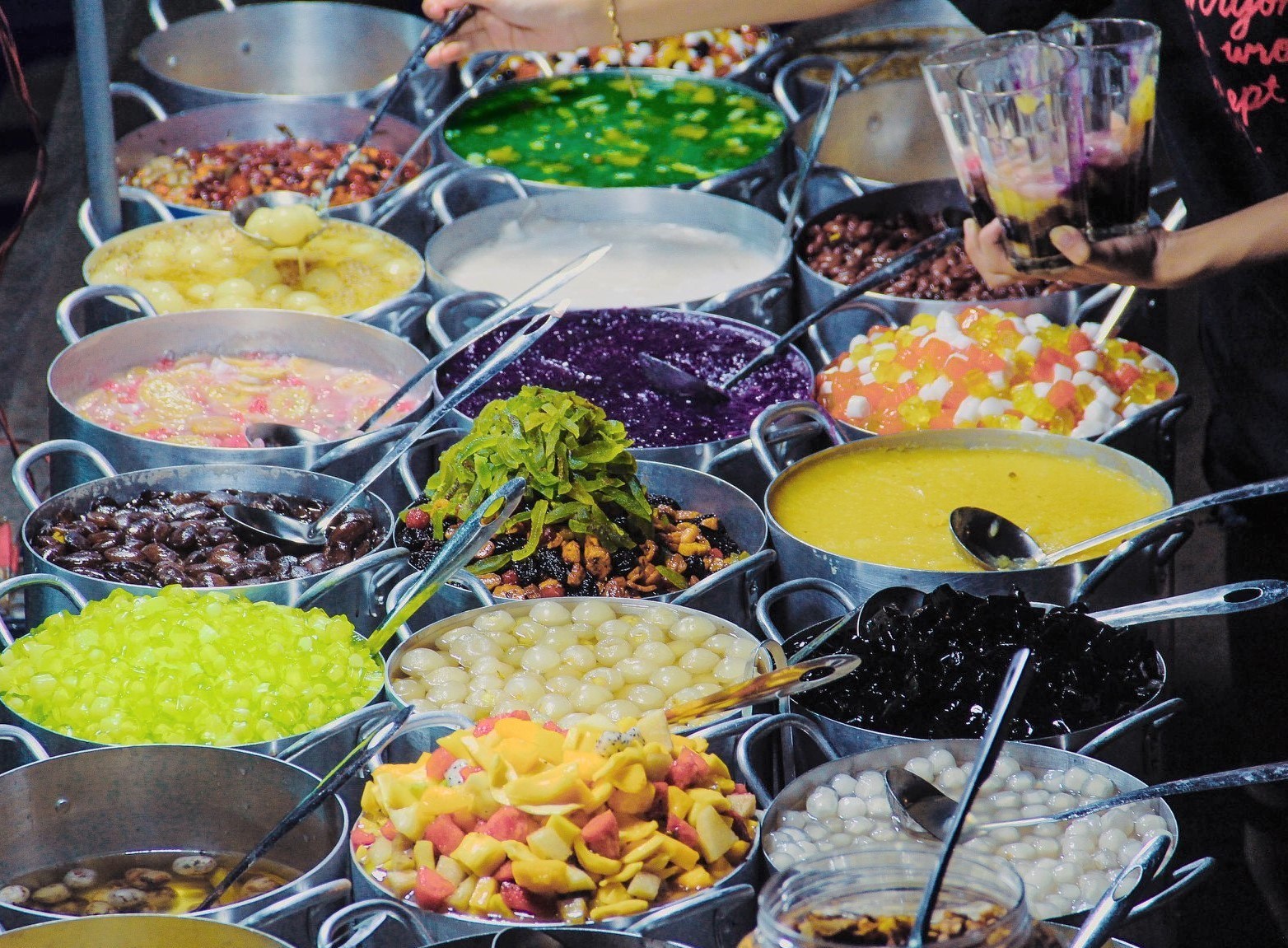 Các loại đồ uống, bạn có thể thử tào phớ, nước đậu nành, chè. Bột lọc heo quay là món chè chỉ ăn ở Huế mới ngon. Giá từ 15.000 đồng một cốc, ở nhiều quán vỉa hè, giá thành có thể rẻ hơn. Địa điểm nổi tiếng nhất là chè Mợ Tôn Đích ngay công viên Thương Bạc.