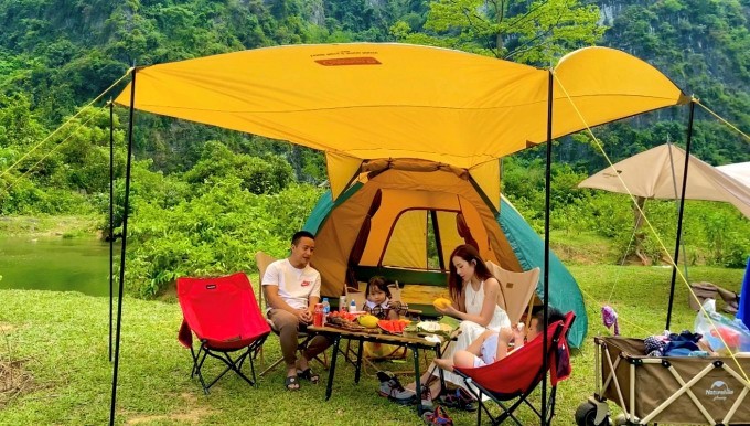 Gia đình Hà My trong buổi cắm trại ở Hữu Lũng, Lạng Sơn. Ảnh: NVCC